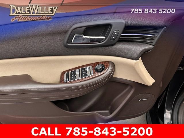 Located at Dale Willey Automotive Used Car and Truck Center / 2800 Iowa St, Lawrence, KS 66046. 2013 Chevrolet Malibu Black Granite Metallic LTZ 2LZ FWD 6-Speed Automatic Electronic with Overdrive 2.0L 4-Cylinder DGI DOHC VVT Turbocharged CLEAN VEHICLE HISTORY...NO ACCIDENTS, RECENT TRADE IN, MOONROOF SUNROOF, LEATHER, HEATED SEATS, Malibu LTZ 2LZ, 4D Sedan, 2.0L 4-Cylinder DGI DOHC VVT Turbocharged, 6-Speed Automatic Electronic with Overdrive, FWD, Black Granite Metallic, Cocoa/Light Neutral Leather, 120-Volt Power Outlet, 19 Aluminum Wheels, Advanced Safety Package, AM/FM Stereo w/CD Player & MP3 Playback, Audio System Feature, Automatic temperature control, Chevrolet MyLink Touch, Driver Memory, Electronics & Entertainment Package, Forward Collision Alert, Heated front seats, High-Intensity Discharge Headlamps, Lane Departure Warning System, Leather-Appointed Seat Trim, LTZ Premium Package, Passive Entry Keyless Access, Pioneer Premium 9-Speaker System, Power driver seat, Power moonroof, Preferred Equipment Group 2LZ, Push Button Keyless Start, Rear Vision Camera, Remote Keyless Entry, SIRIUSXM Satellite Radio, Steering wheel mounted audio controls, Turn signal indicator mirrors, Universal Home Remote.