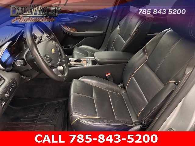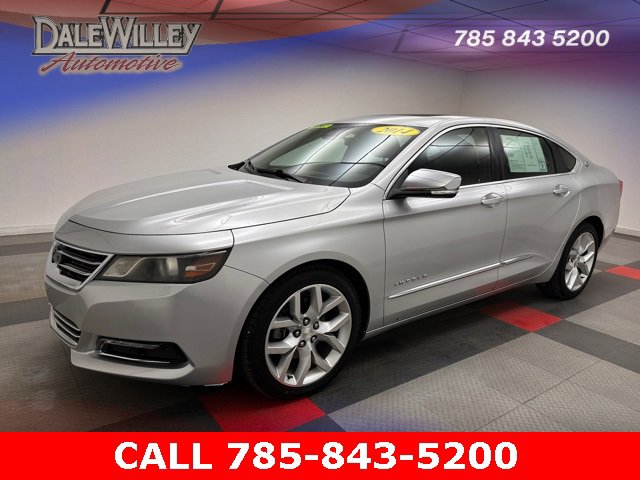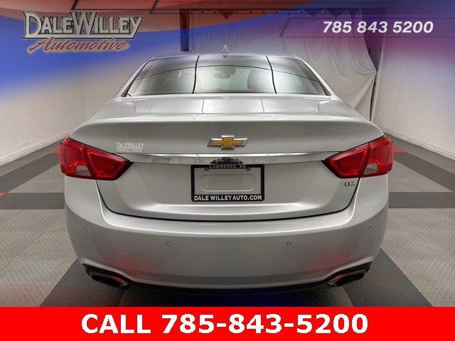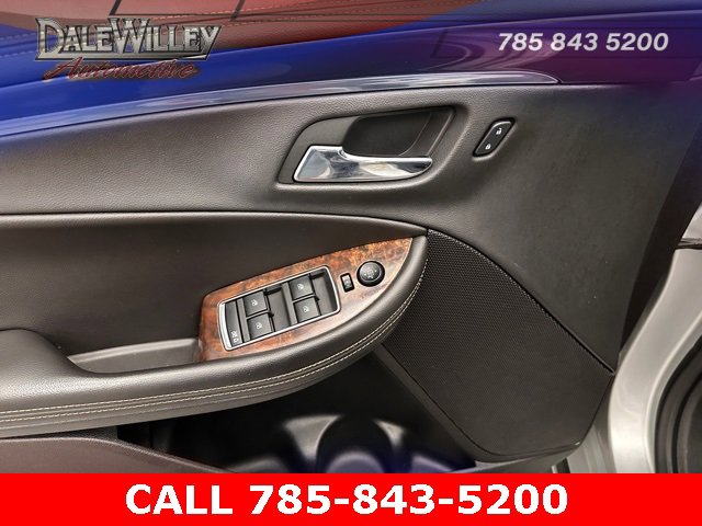 Located at Dale Willey Automotive Used Car and Truck Center / 2800 Iowa St, Lawrence, KS 66046. 2014 Chevrolet Impala Silver Ice Metallic LTZ 2LZ FWD 6-Speed Automatic Electronic with Overdrive 3.6L V6 DI DOHC RECENT TRADE IN, MOONROOF SUNROOF, LEATHER, HEATED SEATS, Impala LTZ 2LZ, 4D Sedan, 3.6L V6 DI DOHC, 6-Speed Automatic Electronic with Overdrive, FWD, Silver Ice Metallic, Black Leather, 100-Watt 6-Speaker System, 3 USB Ports, 6 Speakers, 8-Way Power Driver Seat Adjuster, 8 Diagonal Color Infotainment Display, Alloy wheels, AM/FM radio, Automatic temperature control, Dual front impact airbags, Dual front side impact airbags, Electronic Stability Control, Exterior Parking Camera Rear, Heated door mirrors, Heated front seats, High-Intensity Discharge Headlights, Knee airbag, Leather-Appointed Seat Trim, Occupant sensing airbag, Overhead airbag, Power passenger seat, Power Tilt-Sliding Sunroof w/ 2nd Row Skylight, Preferred Equipment Group 2LZ, Radio: Chevrolet MyLink AM/FM Stereo w/CD Player, Rear side impact airbag, Remote Keyless Entry, SD Card Receptacle, SiriusXM & HD Radio, Steering wheel mounted audio controls, Turn signal indicator mirrors.