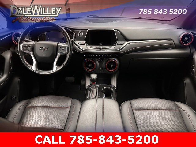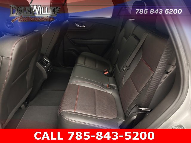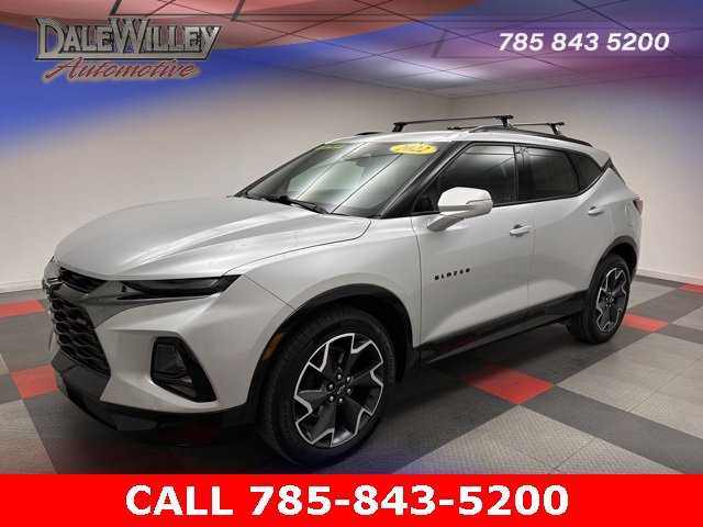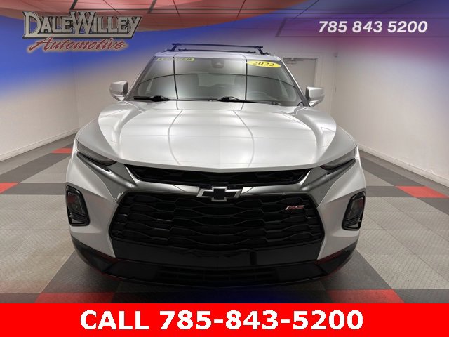 Located at Dale Willey Automotive Used Car and Truck Center / 2800 Iowa St, Lawrence, KS 66046. 2022 Chevrolet Blazer Silver Ice Metallic RS FWD 9-Speed Automatic with Overdrive 3.6L V6 SIDI CLEAN VEHICLE HISTORY...NO ACCIDENTS, RECENT TRADE IN, NAVIGATION GPS NAV, LEATHER, HEATED SEATS, Blazer RS, 4D Sport Utility, 3.6L V6 SIDI, 9-Speed Automatic with Overdrive, FWD, Silver Ice Metallic, Jet Black Leather, 6-Speaker Audio System Feature, Alloy wheels, Apple CarPlay/Android Auto, Automatic temperature control, Child-Seat-Sensing Airbag, Dual front impact airbags, Dual front side impact airbags, Electronic Stability Control, Exterior Parking Camera Rear, Fully automatic headlights, Heated door mirrors, Heated Driver & Front Passenger Seats, Heated Steering Wheel, Knee airbag, Navigation System, Occupant sensing airbag, Overhead airbag, Perforated Leather-Appointed Seat Trim, Power driver seat, Power Liftgate, Preferred Equipment Group 1RS, Radio: Chevrolet Infotainment 3 Plus System, Remote Keyless Entry, SiriusXM w/360L, Steering wheel mounted audio controls, Turn signal indicator mirrors.
