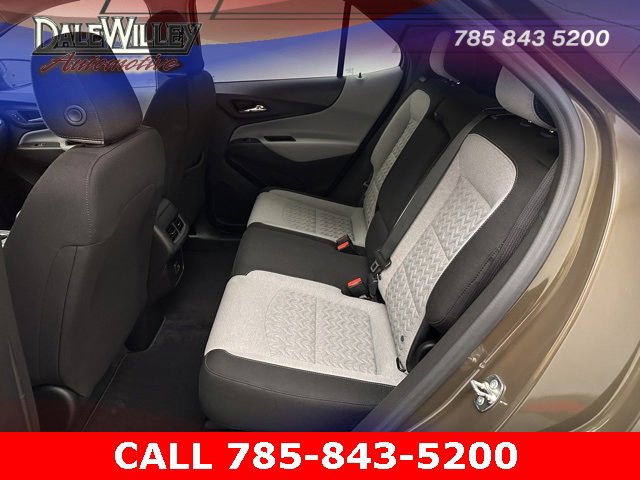 Located at Dale Willey Automotive Used Car and Truck Center / 2800 Iowa St, Lawrence, KS 66046. Pharmaceutical Rep driven so a lot of highway miles. 2024 Chevrolet Equinox Harvest Bronze Metallic LT FWD 6-Speed Automatic Electronic with Overdrive 1.5L DOHC CLEAN VEHICLE HISTORY...NO ACCIDENTS, ONE OWNER, Equinox LT, 4D Sport Utility, 1.5L DOHC, 6-Speed Automatic Electronic with Overdrive, FWD, Harvest Bronze Metallic, Jet Black w/Premium Cloth Seat Trim, 2 Rear USB Charging-Only Ports, 2 USB Ports & Auxiliary Input Jack, 6-Speaker Audio System Feature, Alloy wheels, Bluetooth® For Phone, Driver 8-Way Power Seat Adjuster, Dual front impact airbags, Dual front side impact airbags, Electronic Stability Control, Fully automatic headlights, Occupant sensing airbag, Overhead airbag, Power driver seat, Radio: Chevrolet Infotainment 3 System w/AM/FM, Remote Keyless Entry, SiriusXM, Steering wheel mounted audio controls.