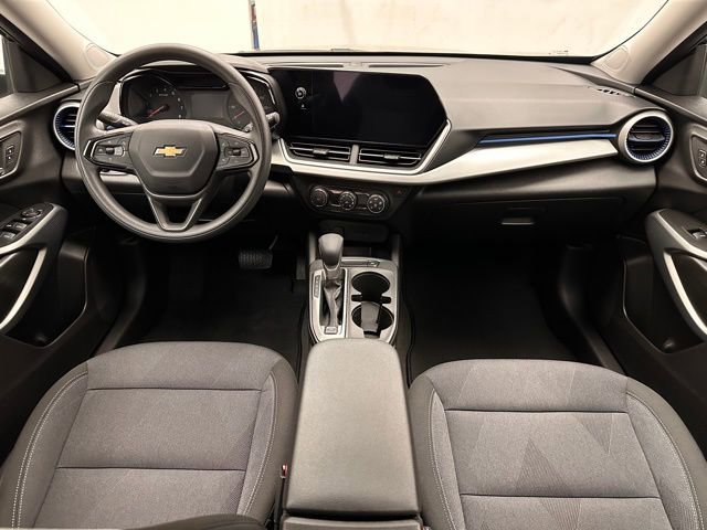 Located at Dale Willey Automotive Used Car and Truck Center / 2800 Iowa St, Lawrence, KS 66046. 2025 Chevrolet Trax Black Metallic LS FWD 6-Speed Automatic 1.2L I3 DI Turbocharged DOHC 12V LEV3-ULEV70 137hp CLEAN VEHICLE HISTORY...NO ACCIDENTS, Trax LS, 4D Sport Utility, 1.2L I3 DI Turbocharged DOHC 12V LEV3-ULEV70 137hp, 6-Speed Automatic, FWD, Black Metallic, Jet Black/Gray With Blue Accents Cloth, 4-Speaker Audio System Feature, Dual front impact airbags, Dual front side impact airbags, Electronic Stability Control, Exterior Parking Camera Rear, Fully automatic headlights, License Plate Front Mounting Package, Occupant sensing airbag, Overhead airbag, Preferred Equipment Group 1LS, Premium audio system: Chevrolet Infotainment 3, Radio: Chevrolet Infotainment 3 System with AM/FM, Remote Keyless Entry, SiriusXM Trial Subscription, Steering wheel mounted audio controls.
