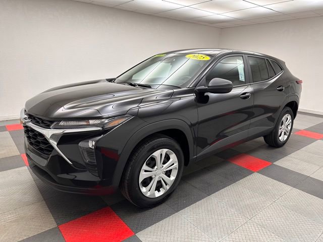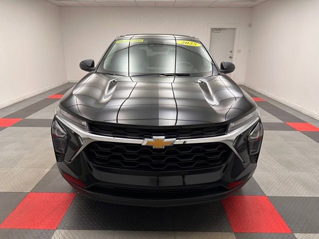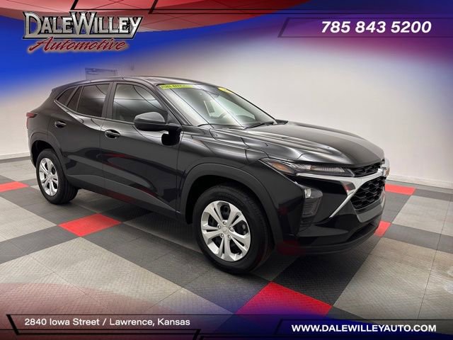 Located at Dale Willey Automotive Used Car and Truck Center / 2800 Iowa St, Lawrence, KS 66046. 2025 Chevrolet Trax Black Metallic LS FWD 6-Speed Automatic 1.2L I3 DI Turbocharged DOHC 12V LEV3-ULEV70 137hp CLEAN VEHICLE HISTORY...NO ACCIDENTS, Trax LS, 4D Sport Utility, 1.2L I3 DI Turbocharged DOHC 12V LEV3-ULEV70 137hp, 6-Speed Automatic, FWD, Black Metallic, Jet Black/Gray With Blue Accents Cloth, 4-Speaker Audio System Feature, Dual front impact airbags, Dual front side impact airbags, Electronic Stability Control, Exterior Parking Camera Rear, Fully automatic headlights, License Plate Front Mounting Package, Occupant sensing airbag, Overhead airbag, Preferred Equipment Group 1LS, Premium audio system: Chevrolet Infotainment 3, Radio: Chevrolet Infotainment 3 System with AM/FM, Remote Keyless Entry, SiriusXM Trial Subscription, Steering wheel mounted audio controls.