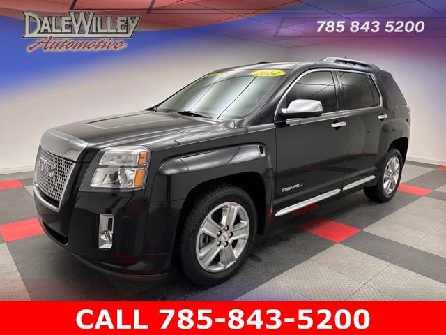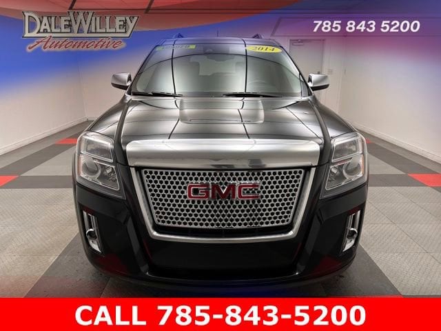 Located at Dale Willey Automotive Used Car and Truck Center / 2800 Iowa St, Lawrence, KS 66046. 2014 GMC Terrain Carbon Black Metallic Denali AWD 6-Speed Automatic 2.4L 4-Cylinder SIDI DOHC VVT CLEAN VEHICLE HISTORY...NO ACCIDENTS, RECENT TRADE IN, NAVIGATION GPS NAV, MOONROOF SUNROOF, LEATHER, HEATED SEATS, ALL WHEEL DRIVE, Terrain Denali, 4D Sport Utility, 2.4L 4-Cylinder SIDI DOHC VVT, 6-Speed Automatic, AWD, Carbon Black Metallic, Black Leather, 4-Spoke Leather-Wrapped w/Wood Steering Wheel, 8-Way Power Adjustable Passenger Seat w/Lumbar, Alloy wheels, Automatic temperature control, Bluetooth® For Phone, Dual front impact airbags, Dual front side impact airbags, Electronic Stability Control, Forward Collision Alert & Lane Departure Warning, Fully automatic headlights, Heated Driver & Front Passenger Seats, Heated front seats, Illuminated Front Sill Plates, IntelliLink, Memory seat, Occupant sensing airbag, Overhead airbag, Perforated Leather-Appointed Seat Trim, Power passenger seat, Power Programmable Rear Liftgate, Power Tilt-Sliding Sunroof w/Express Open, Preferred Equipment Group 5SA, Radio: Color Touch AM/FM Stereo w/CD Player, Radio: Color Touch AM/FM Stereo w/Navigation, Rear Cross-Traffic Alert, Rear Park Assist, Remote Keyless Entry, Remote Vehicle Start, Safety Package, Satin Chrome Door Handles, Satin Chrome Heated Power-Adjustable Mirrors, Satin Chrome Luggage Rails, Satin Chrome Surround Grille, Side Blind Zone Alert, Single-Zone Automatic Climate Control, SIRIUSXM Satellite Radio, Steering wheel mounted audio controls, Universal Home Remote.