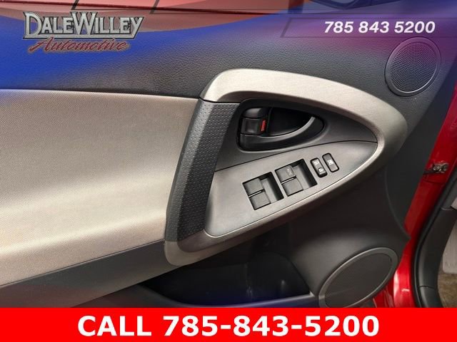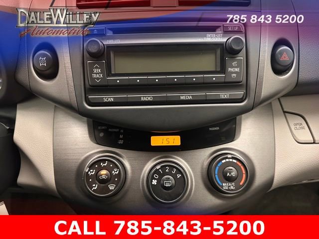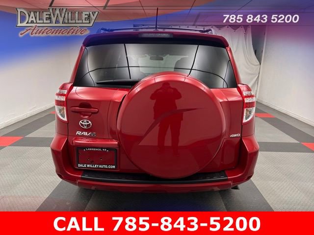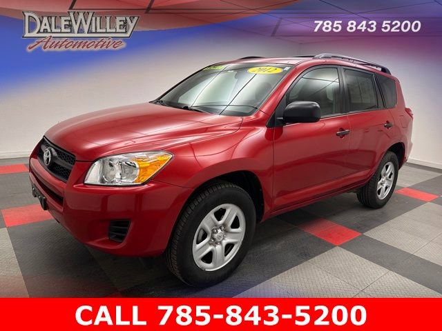 Located at Dale Willey Automotive Used Car and Truck Center / 2800 Iowa St, Lawrence, KS 66046. 2012 Toyota RAV4 Barcelona Red Metallic 4WD 4-Speed Automatic 2.5L 4-Cylinder DOHC Dual VVT-i RECENT TRADE IN, FOUR WHEEL DRIVE 4WD, 4D Sport Utility, 2.5L 4-Cylinder DOHC Dual VVT-i, 4-Speed Automatic, 4WD, Barcelona Red Metallic, Ash w/Fabric Seat Trim or Fabric Seat Trim w/Base Plus EVP Package, Anti-whiplash front head restraints, Dual front impact airbags, Dual front side impact airbags, Electronic Stability Control, Occupant sensing airbag, Overhead airbag, Radio: AM/FM/CD/MP3/WMA, Remote Keyless Entry, Steering wheel mounted audio controls.